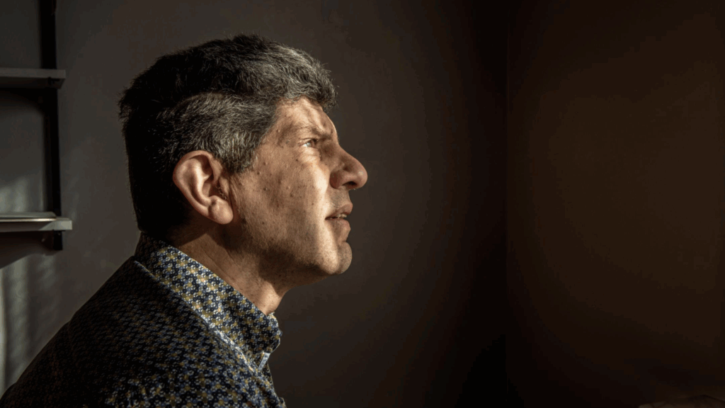 Guy Van der Borght, 55 jaar, is vader van drie kinderen, gescheiden en psychosegevoelig. Guy getuigt, op verschillende plaatsen op verschillende manieren.
