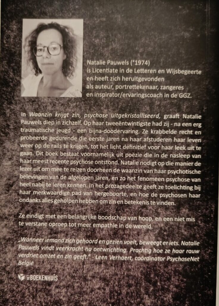En vandaag ligt haar boek er, Waanzin krijgt zin, Psychose uitgekristalliseerd. Poëzie liet toe om psychotische ervaringen van de afgelopen jaren voor Natalie te ordenen en uit te kristalliseren.